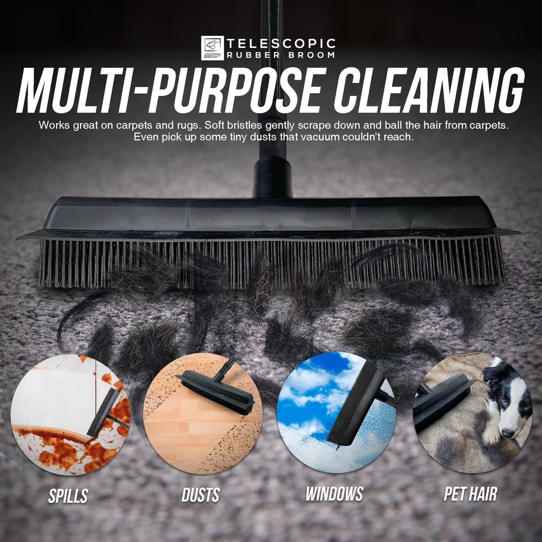 The all in one amazing rubber broom can be used on hard flooring such as laminate and vinyl as well as carpets and rugs.