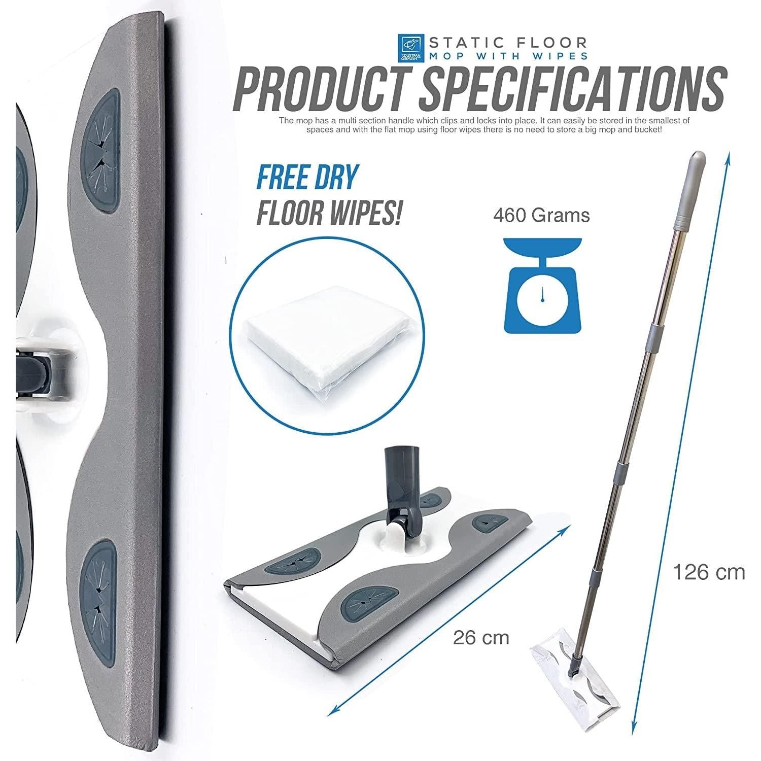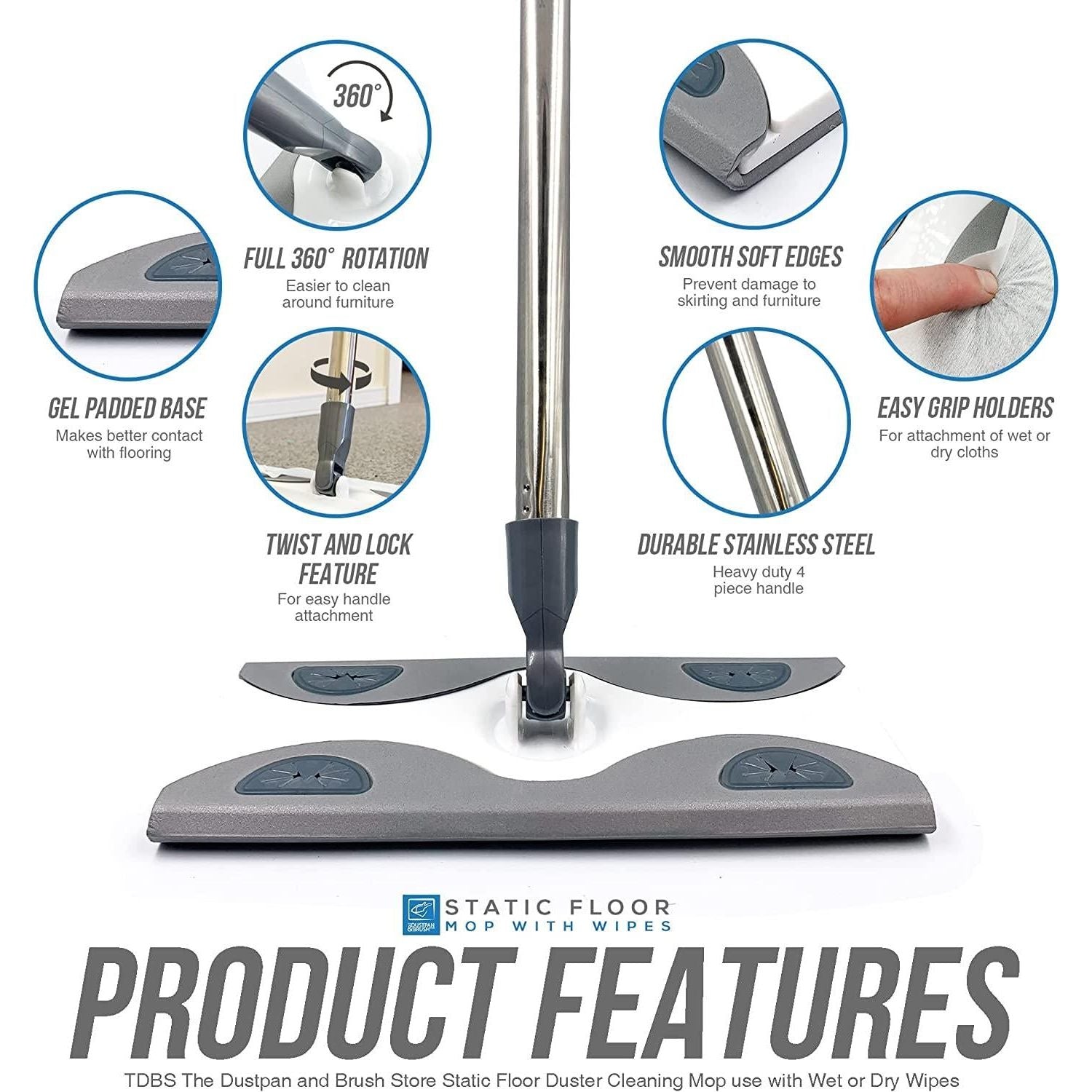 360 Degree Swivel Head - Smooth Easy Cleaning and Allows Access to Corners of Rooms, Along Skirting and Under Furniture, Cloths Simply Push into Place - Long Handle so No Bending
