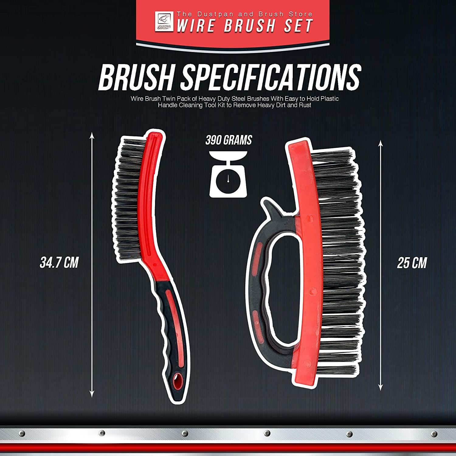 - Trusted Brand – Guaranteed quality by the Dustpan and Brush Store. The heavy duty wire brush set is manufactured to meet your exact needs for professional and domestic abrasive cleaning. Our steel brush will reduce your efforts of cleaning dirt surfaces, removing rust and dragging debris.