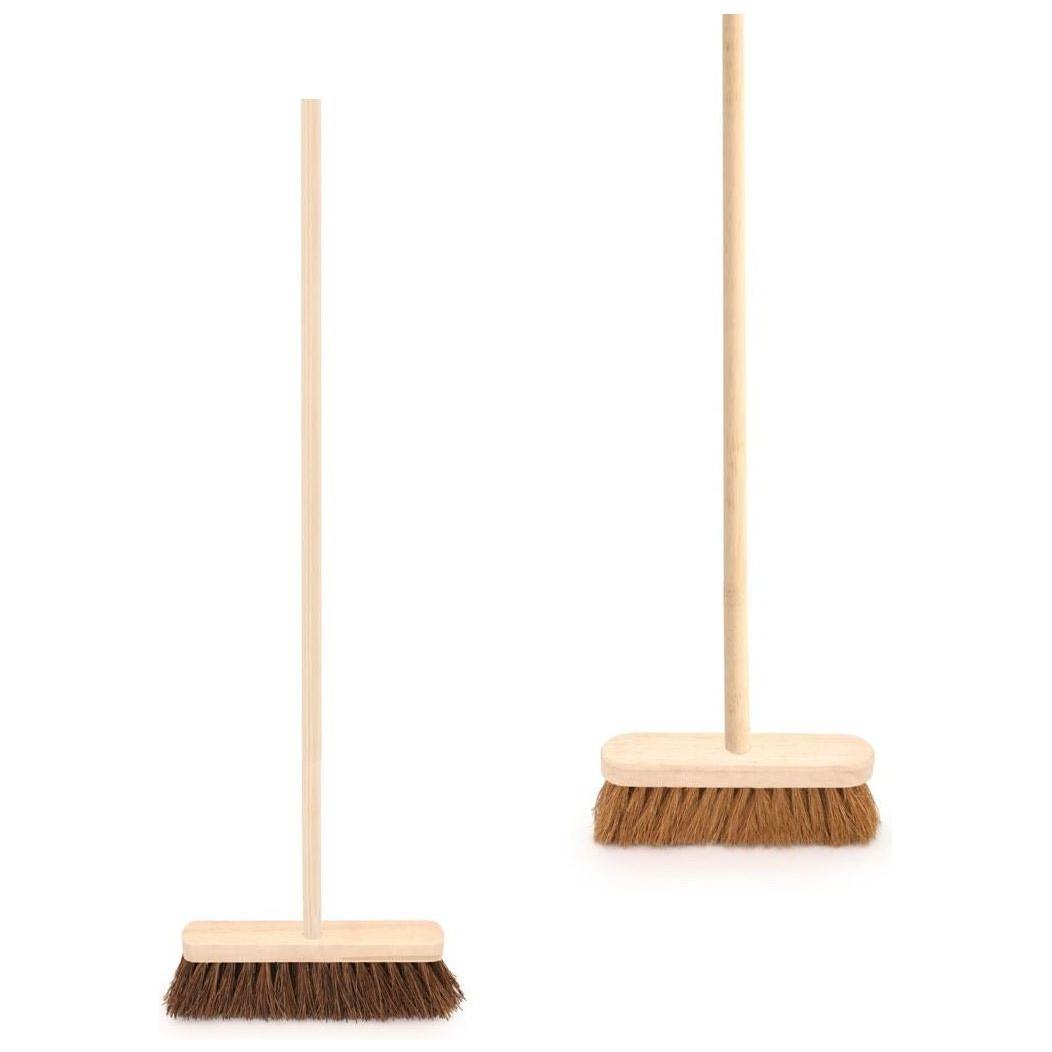 The Dustpan and Brush Store 10" Stiff and 10" Soft Broom and Wooden Handles.