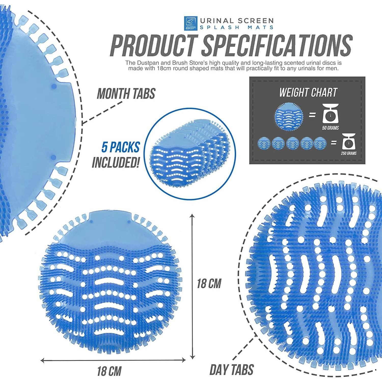 Fits any urinal – The Dustpan and Brush Store’s high-quality and long-lasting scented urinal discs are made with 18cm round-shaped mats that will practically fit any urinals for men.