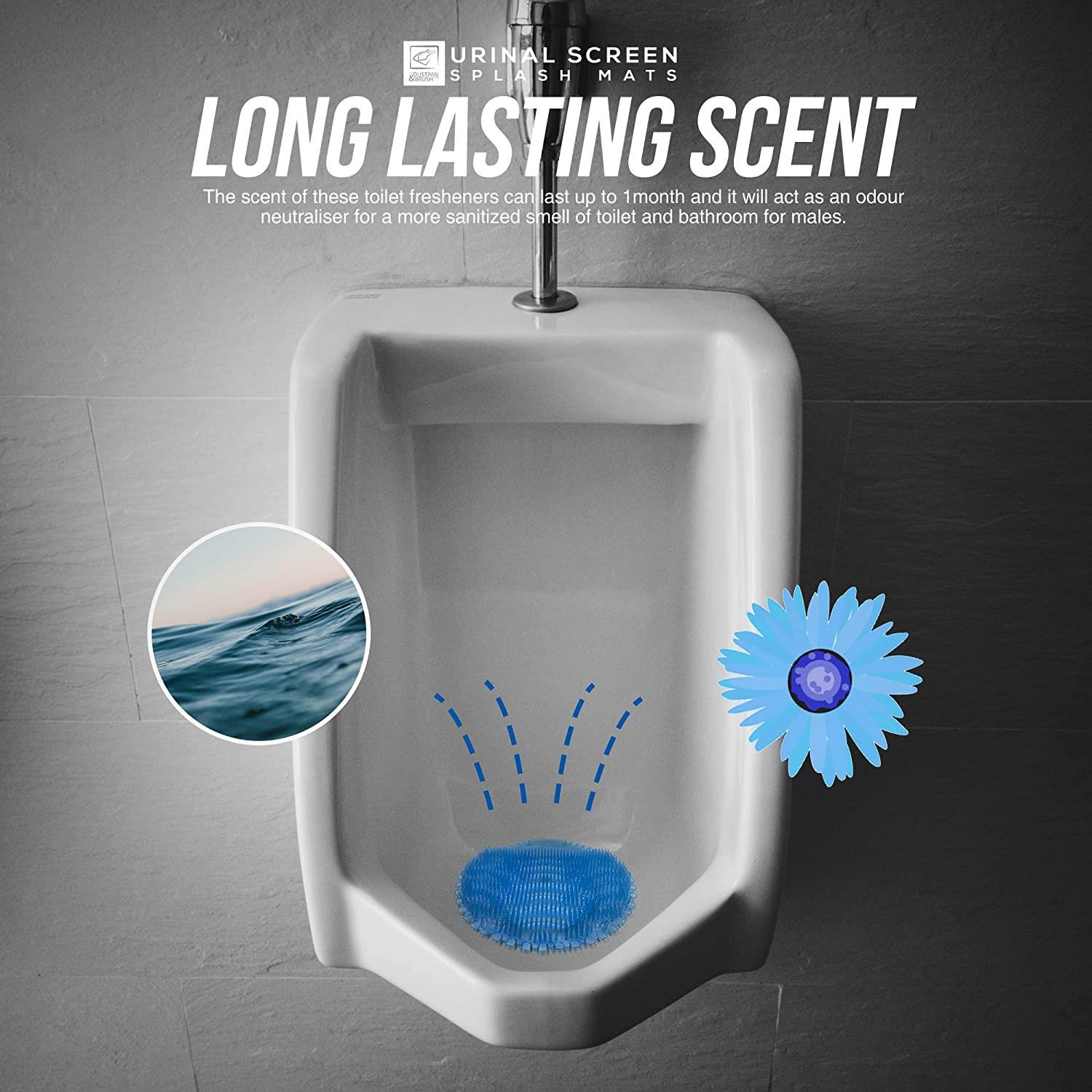 Long-lasting Fresh Ocean Mist Fragrance Urinal Screens – The scent of these toilet fresheners can last up to one month and it will act as an odour neutraliser for a more sanitized smell of toilet and bathroom for males.