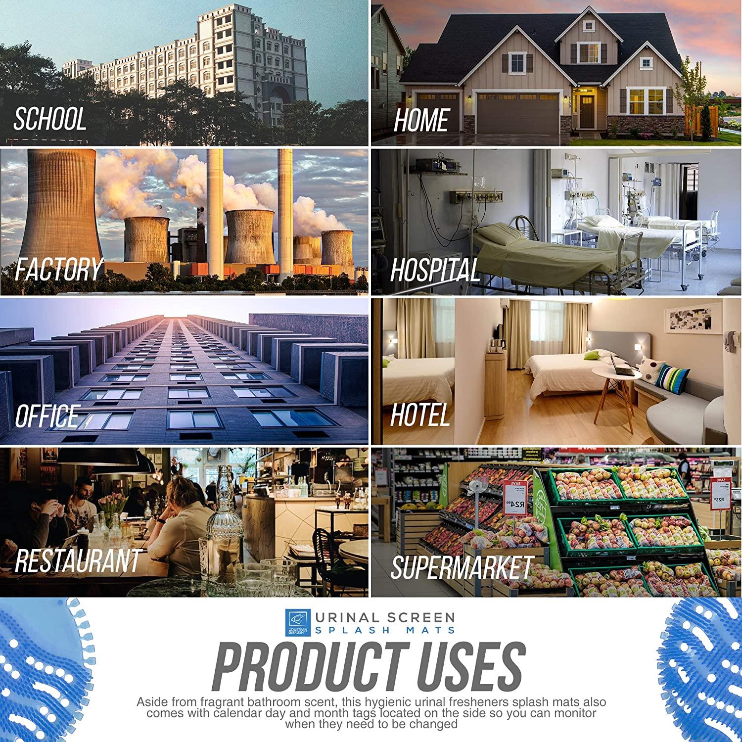 No Urinal Clogs and Blocked Drains – These toilet smell refresher splash pads are great replacement for urinal blocks to keep urinals smelling fresh, hygienic and clean. In addition, the toilet discs prevent urinal clogging of dirt like chewing gums, toilet papers and cigarette butts, down the drain.